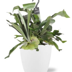 Platycerium Bifurcatum – Ø17cm – ↕30cm + Pot Brussels D18x17cm – Weiß