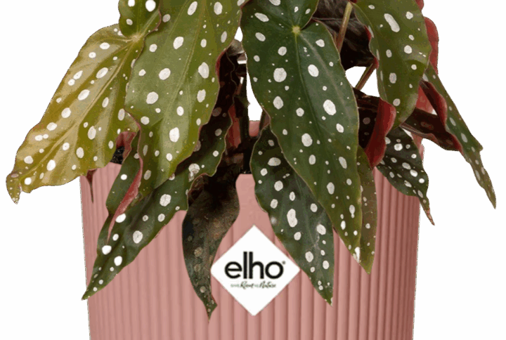 - Die Begonia Maculata hat auffällige dunkelgrüne Blätter mit silberweißen Punkten auf der Oberseite und einer tiefroten Unterseite.