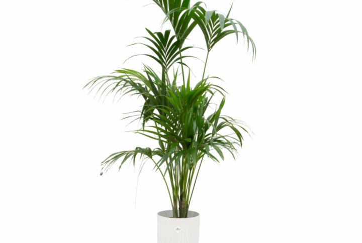 - De Kentia palm (Howea forsteriana) heeft lange, elegant gebogen bladeren die een weelderige en tropische uitstraling geven.