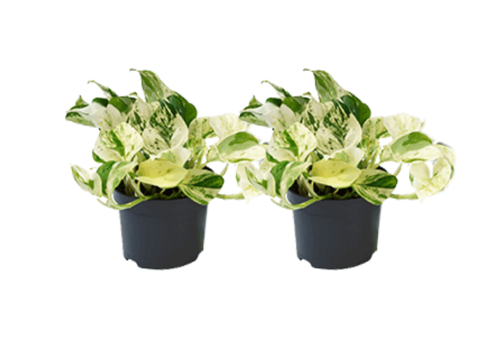 Außenansicht: Die Epipremnum Marble Queen hat wunderschöne herzförmige Blätter mit einem schönen marmorartigen Muster in Weiß und Grün. Die Blätter sind fest und glänzend, was der Pflanze ein elegantes Aussehen verleiht.