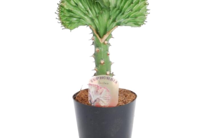 - De Euphorbia lactea Cristata, ook wel bekend als de ‘Koraal cactussen’, heeft een unieke, golfachtige vorm die doet denken aan koraal. De plant is helder groen van kleur en kan tot 30 cm hoog worden. De bladeren zijn dik en vlezig, wat zorgt voor een interessante textuur.