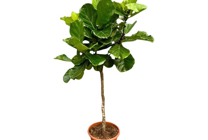 • De Ficus Lyrata, ook wel bekend als de vioolbladplant, heeft grote, glanzende bladeren die een unieke, vioolachtige vorm hebben. De bladeren zijn donkergroen en kunnen een aanzienlijke grootte bereiken, waardoor de plant een dramatische uitstraling heeft. Deze plant kan tot 2 meter hoog worden en heeft een stevige, rechtopstaande stam.