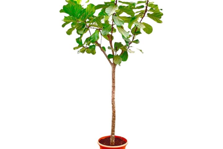 • De Ficus Lyrata, ook wel bekend als de vioolbladplant, heeft grote, glanzende bladeren die een unieke, vioolachtige vorm hebben. De bladeren zijn donkergroen en kunnen een aanzienlijke grootte bereiken, waardoor de plant een dramatische uitstraling heeft. Deze plant kan tot 2 meter hoog worden en heeft een stevige, rechtopstaande stam.