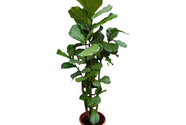 • De Ficus Lyrata, ook wel bekend als de vioolbladplant, heeft grote, glanzende bladeren die een unieke, vioolachtige vorm hebben. De bladeren zijn donkergroen en kunnen een aanzienlijke grootte bereiken, waardoor de plant een dramatische uitstraling heeft. Deze plant kan tot 2 meter hoog worden en heeft een stevige, rechtopstaande stam.