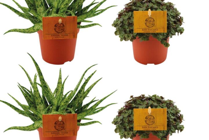 Aussehen der Pflanzen: Aloe Spider: Diese Pflanze hat lange, schmale, grüne Blätter, die in einer Rosette wachsen und ein spinnenähnliches Aussehen haben. Die Blätter sind stachelig und haben einen hellgrauen Farbton mit einigen leuchtend grünen Akzenten. Crassula Tenelli: Diese Pflanze hat fleischige, grüne Blätter, die eine hellblaue oder graue Nuance haben können. Die Blätter wachsen in einer dichten Rosette und haben ein auffälliges, dekoratives Aussehen. Im Frühling oder Sommer können kleine, sternförmige weiße Blüten erscheinen.