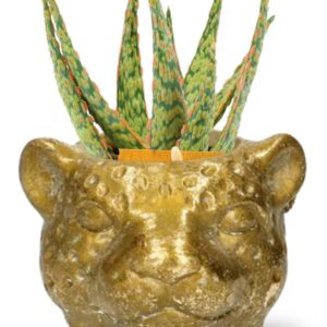 Aloe Hybride – Ø10,5cm – ↕15cm + Planter Luipaard D12x9,5cm – Gold